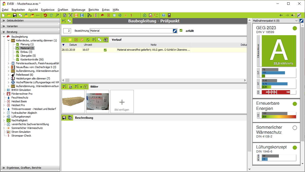 - Erfassen/Bearbeiten von Komponenten der Baubegleitung (Dämmen Dach, Austausch Fenster etc.)