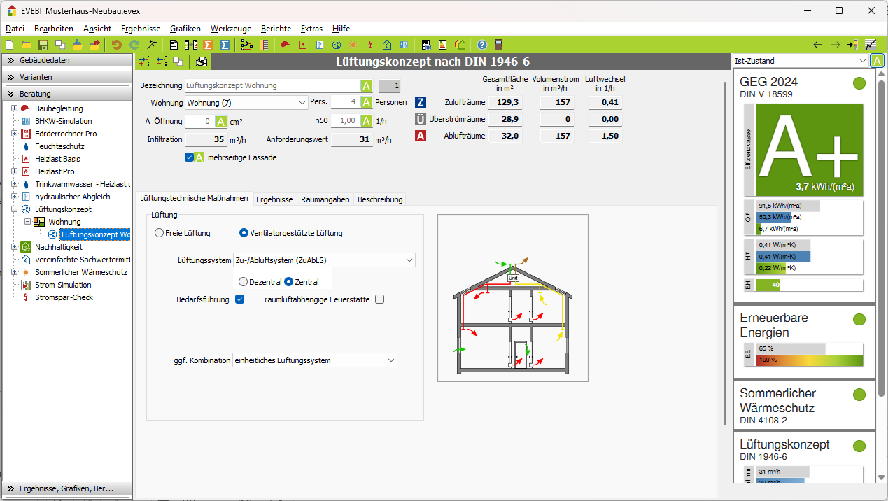 - Lüftungskonzept in einem ausführlichen Bericht mit Erläuterungen